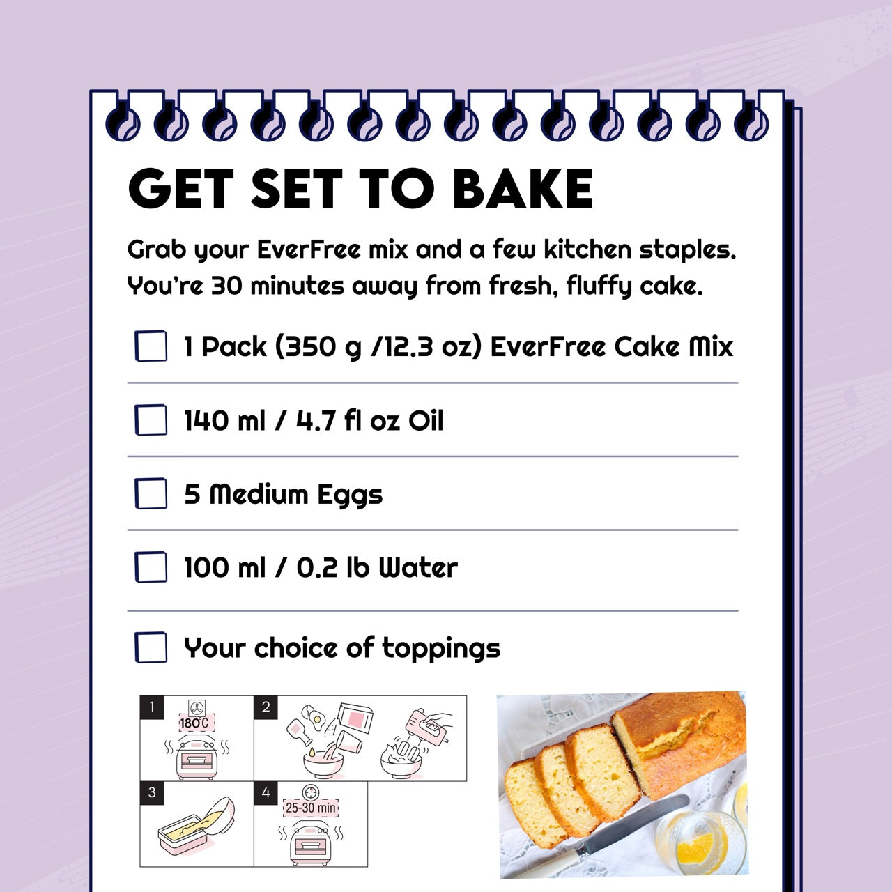 This gluten-free cake mix bakes light, fluffy, and golden — without the usual suspects like dairy, eggs, or nasties. Plant-based, easy to prep, and actually delicious.
