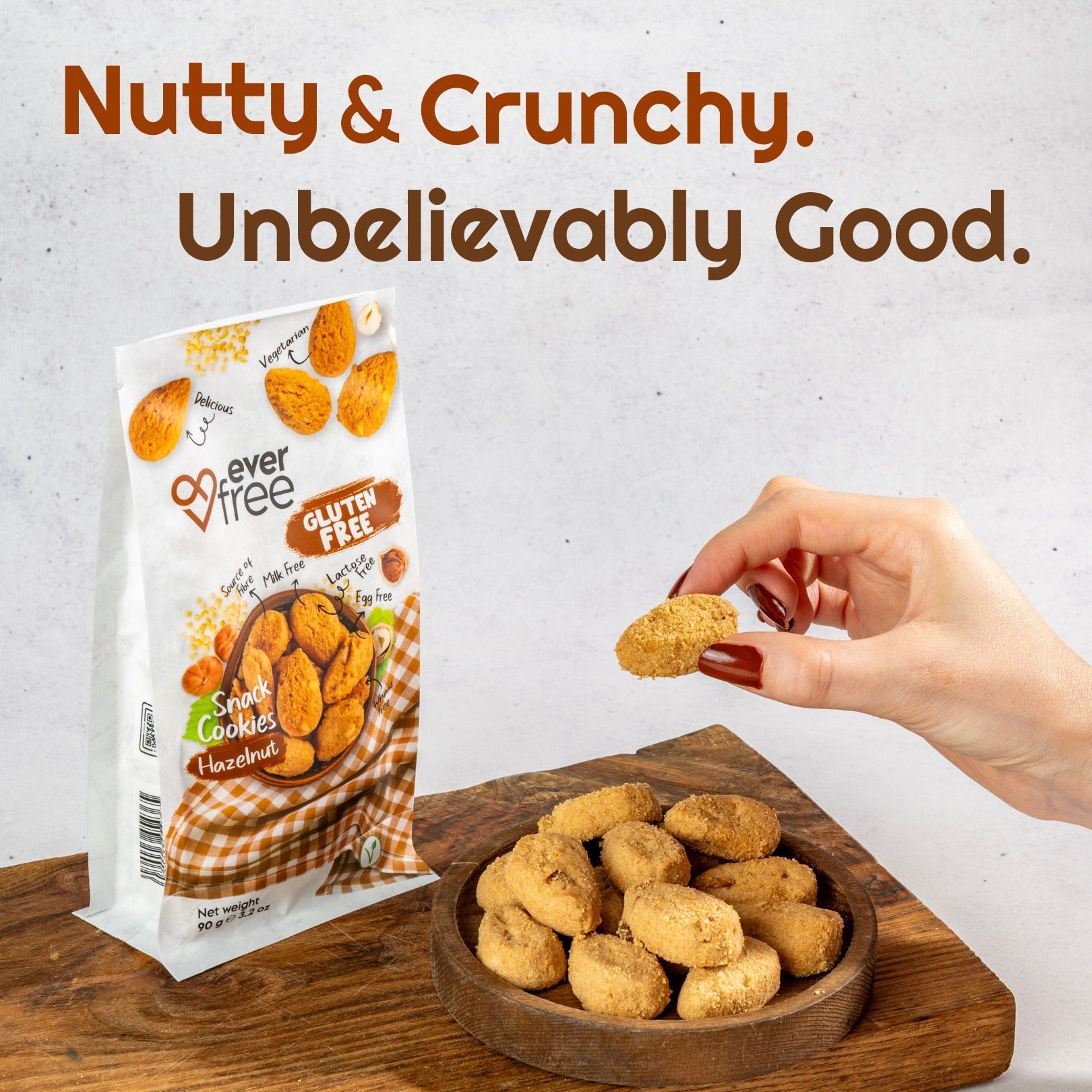 Crispy edges. Soft centres. Real hazelnuts.
