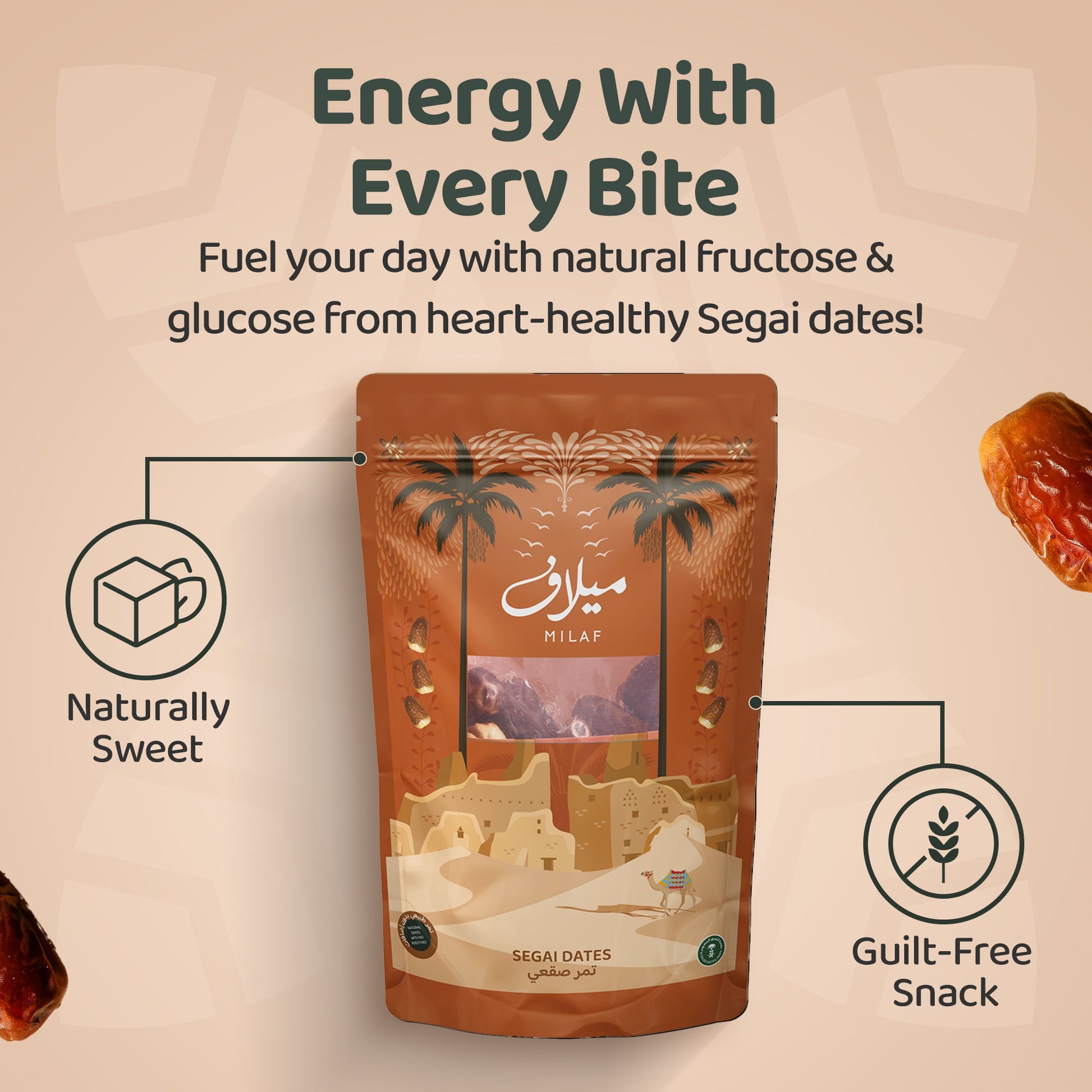 A delightful mix of chewy and crisp textures, Segai dates are high in potassium, copper, and manganese. These nutrients contribute to cardiovascular health, iron transport, and bone strength. A perfect addition to your diet. Incorporate them into your daily nutrition for a healthier lifestyle.