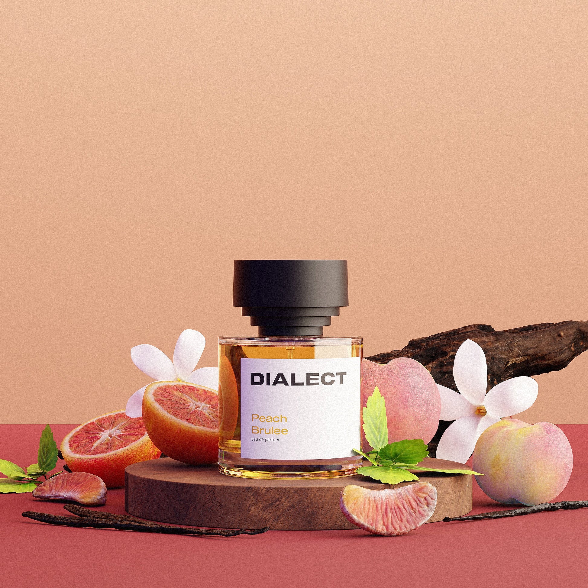 Peach Brulee begins with a burst of divine peach, complemented by the bright and spicy notes of red orange and cardamom. The heart of the fragrance is revealed through the seductive notes of rum and cognac, balanced by a touch of jasmine. Finally, the scent reaches its peak with the fusion of bold patchouli and sandalwood, paired with a warm vanilla enhanced by tonka bean. This is the essence of Peach Brulee, our interpretation of Tom Ford's classic Bitter Peach.